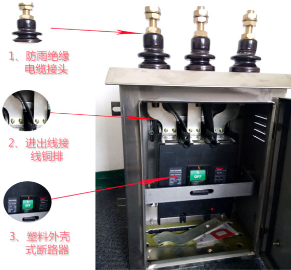 低压户外装置,适用于交流50HZ,额定电压380V的电力线路中,供电路自动(手动)切断过负荷电流及故障保护之用。