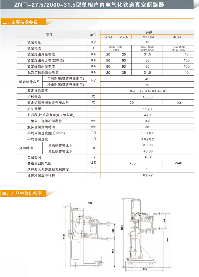 ZN□-27.5/2000-31.5型单相户内电气化铁道真空断路器