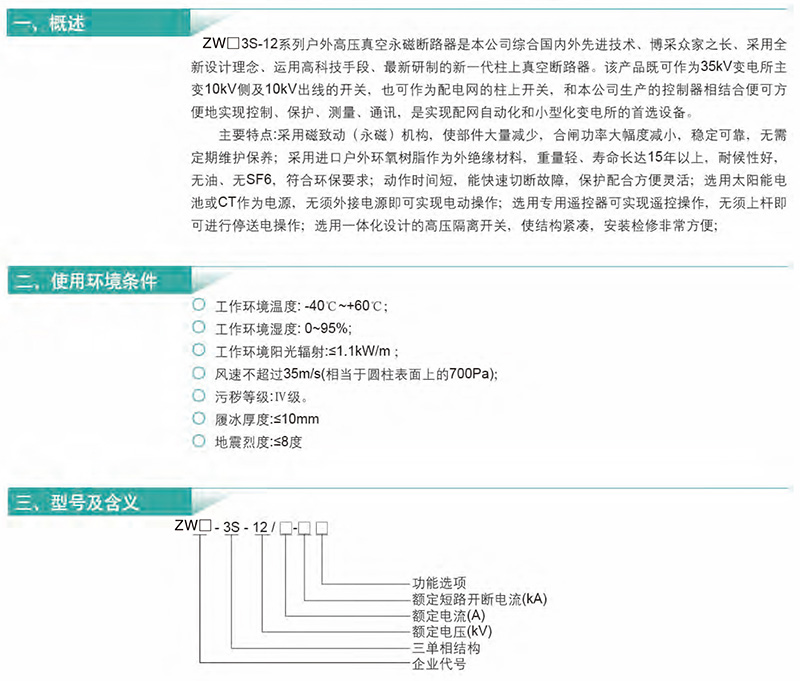 ZW□3S系列户外永磁高压真空断路器(自动化)