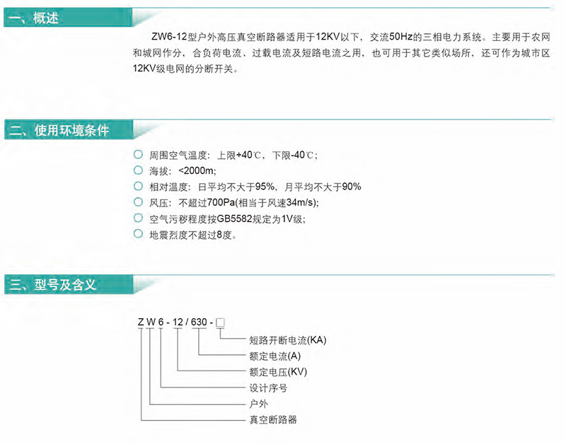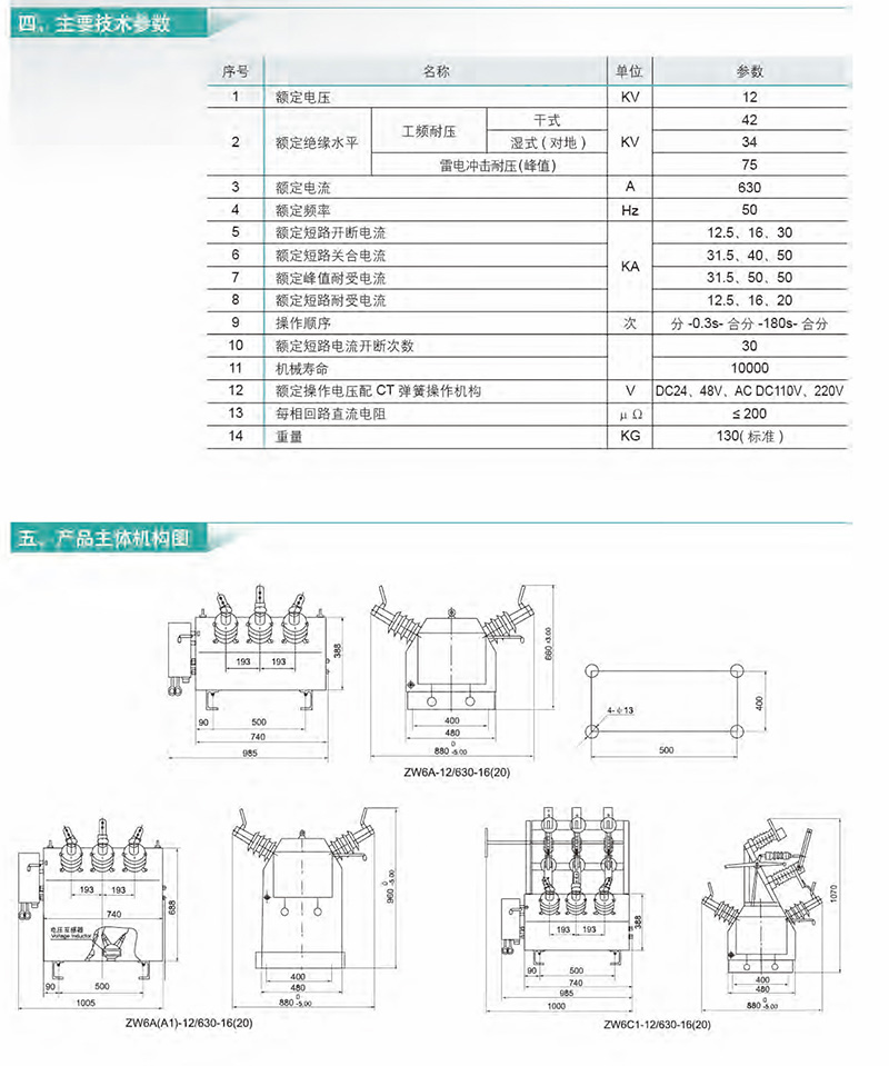 ZW6-12/630-16(20)户外高压真空断路器