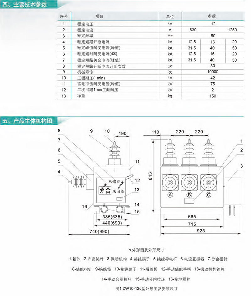 ZW10-12系列户外高压真空断路器