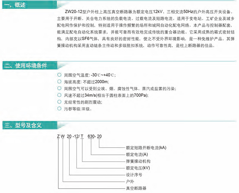 ZW20-12系列户外高压真空断路器
