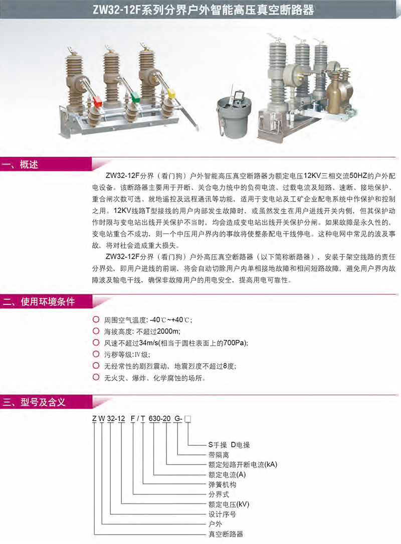 ZW32-12F系列分界户外智能高压真空断路器