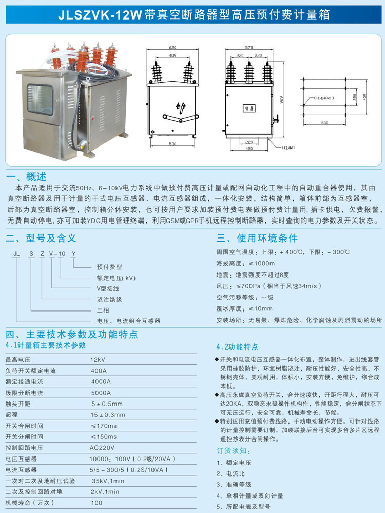JLSZK-12W2带真空断路器型高压预付费计量箱